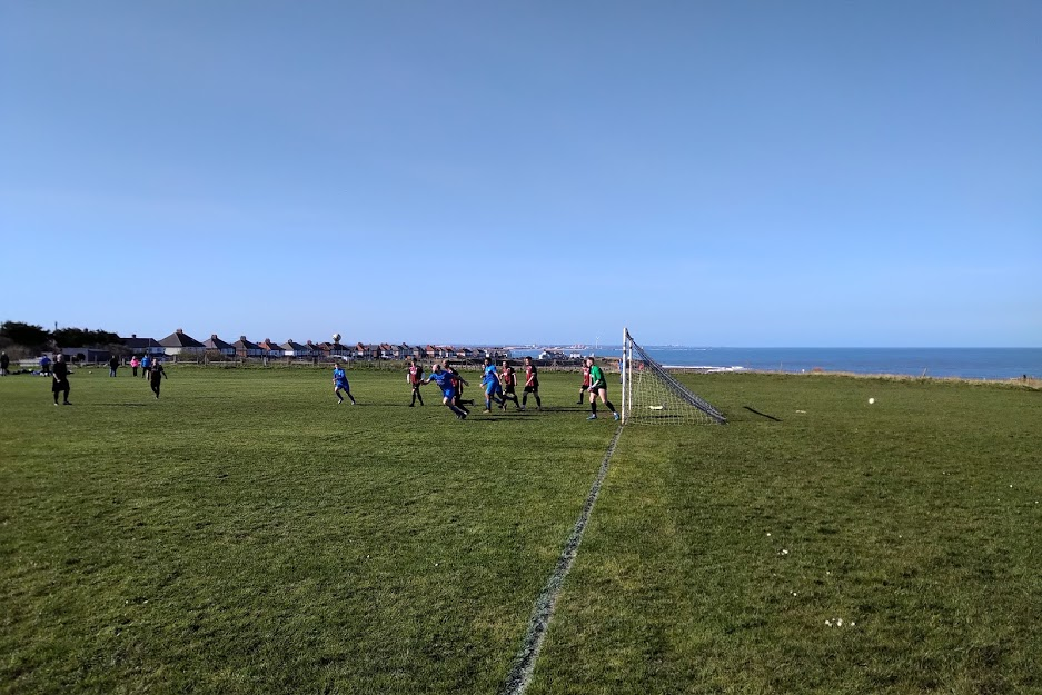 Meanwhile, to return to the subject of football, the Northern Alliance has returned and I have drunk deeply from this fountain of footballing purity. While the Northern League decided to abandon any thoughts of organising a compensatory end of season kickaround, presumably because the absence of fans meant an absence of income, the Alliance stood up for grassroots players and fans across the region by reorganising their 4 divisional cups into mini-leagues. Additionally, the Northumberland FA decided to persevere with the Benevolent Bowl and Minor Cup, which is what took me to Seaton Sluice’s Crag Park on Easter Saturday for an NFA Minor Cup third round clash with North Shields Community Christians FC.